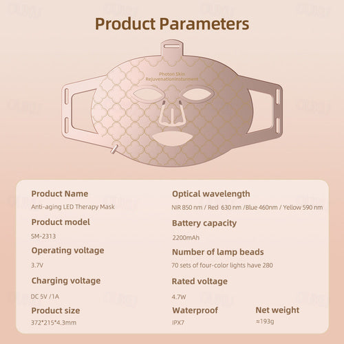 The mask uses LED light with different wavelengths to target specific skin concerns. LED light therapy relies on phototherapy technology, using gentle light waves to stimulate cells and rejuvenate the skin.